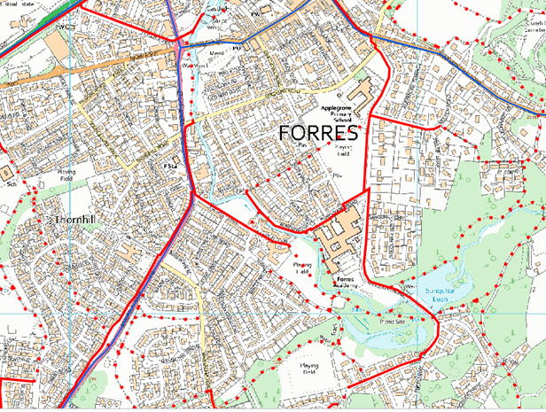 With reference to the concern raised at the Pre Application Notice consultation public session on the safety of primary school-aged children travelling to Applegrove Primary School crossing the A940 Grantown Road at the Orchard Road and Mannachie Road junctions, it should be noted that the Applegrove Primary School catchment does not extend to the west of the A940 – that residential area falls within the Pilmuir Primary School catchment.