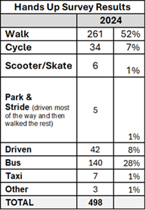 Travel to school data in Moray is mainly monitored through the Living Streets Travel Tracker programme, as well as the Hands Up Scotland Survey (HUSS) done once a year by the Scottish Government. The recent HUSS for Forres Academy demonstrate that the number of pupils opting for Active Travel options is significant – the majority pupils who current walk and cycle is not expected to change.