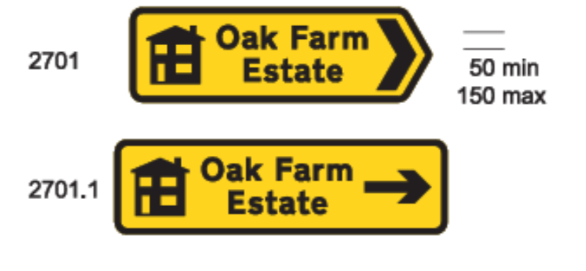 Example temporary directional signs per The Traffic Signs Regulations and General Directions 2016