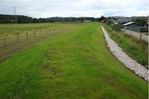 To prevent water building up on the dry-side of the embankment an additional bund was constructed at the north east end between the boundary fence and the embankment (see above photo).